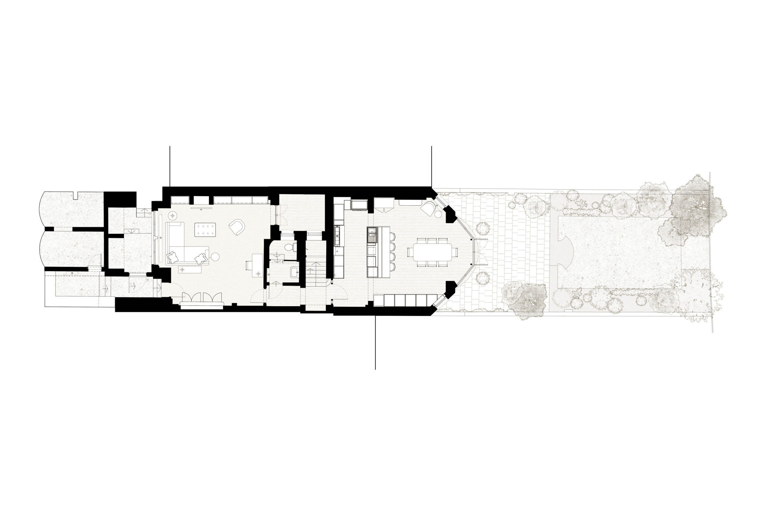 The property is a 20th Century, 4 storey red brick terraced house within Campden House sub-area of Kensington Conservation Area. Previous alterations have left the rear elevation relatively disordered, and proposals seek to bring symmetry, harmony and light into the property. Alterations on the upper floors include the creation of a double height clerestory. The interiors are to be entirely renovated in order to suit the needs of the occupants.